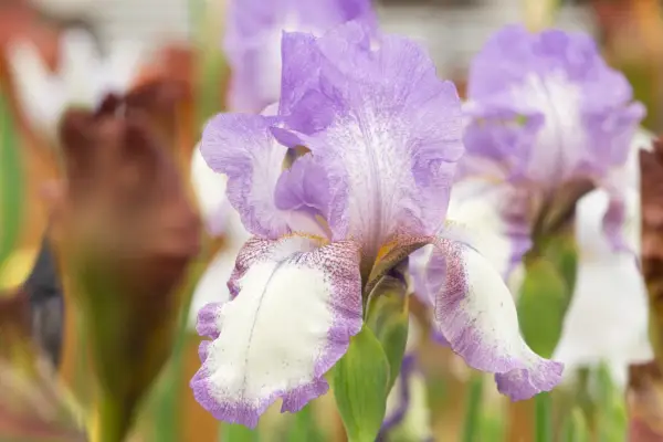 Irys „Welda tancerza” with ruffled white and pale violet petals