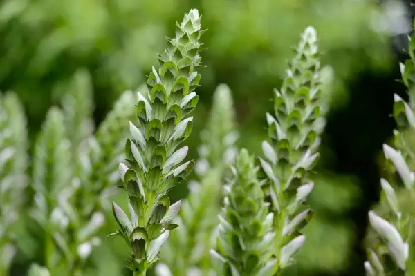 Acanthus „Summer Beauty” to hybrydowy Acanthus, tworzący szerokie kępy giganta, błyszczące, ciemnozielone, drobno cięte liście. Latem pojawiają się wysokie kolce białych kwiatów, z których każdy z kapturem przypominał purpurowy bract. Jest idealny do uprawy na mieszanej granicy zielnej, szczególnie wśród odważnych kolorów, i powoduje uderzającą obecność architektoniczną.