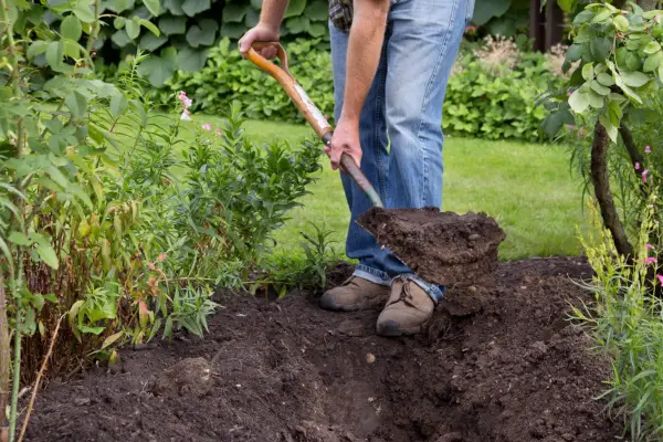 Jeśli sadzisz pod ustalonymi drzewami, wykop suchą, zubożałą glebę między dużymi korzeniami i zastąp ją lepszą glebą z innej części ogrodu.