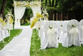 Po udekorowaniu obszaru ołtarza zwróć uwagę na krzesła. Większość ludzi używa jednej z dwóch poniższych opcji do dekoracji krzeseł: