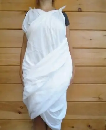 Chwyć płaski arkusz z dowolnego zestawu arkuszy i możesz związać togę w kilka sekund. Użyj podwójnego prześcieradła, aby uzyskać szczuplejszą sylwetkę i prześcieradła królowej lub króla, aby uzyskać więcej miejsca do poruszania się. Rzuć trochę sandały, i masz całkowity wygląd.