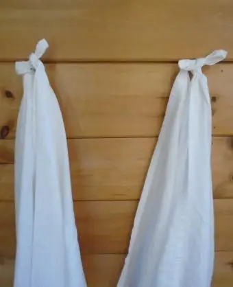 - Weź dwa rogi na jednym krótkim boku prześcieradła i zwiąż je razem.