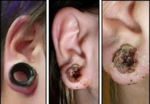 - Jeśli zbyt szybko rozciągniesz ucho, możesz doświadczyć lekkiego krwawienia. Staje się to problemem, gdy krwawienie jest nadmierne lub towarzyszy mu ropa lub wydzielina. Ropa to sposób organizmu na walkę z infekcją. Możesz również zauważyć ropień, który jest kieszonką na ropę na płacie.