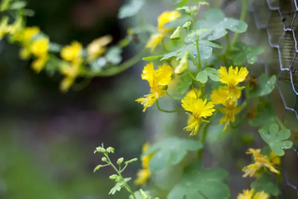 Canary Creeper, Tropaeolum Alien , jest ładnym wspinaczem z głęboko podzielonymi liśćmi w kształcie palmy i masami żółtych kwiatów latem. Jest idealny do dorastania słonecznej ściany i jest również miły dla szklarni.